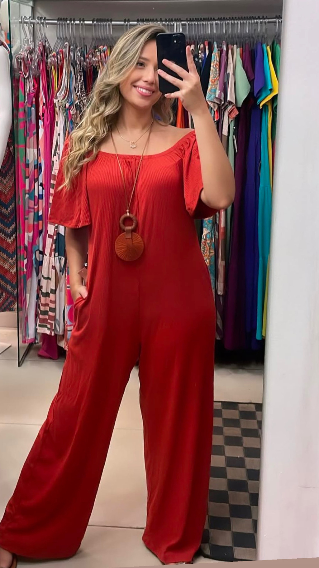 Macacão Maya – O macacão em malha canelada que eleva seu estilo a um novo patamar. Com um design sofisticado, este modelo apresenta elástico nos ombros e mangas flaire, proporcionando um toque de elegância e conforto em qualquer ocasião.